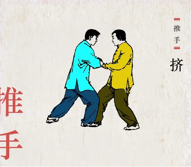 太极推手,武术技法。双人徒手对抗项目之一。也称推手、打手、揉手、擖手,是两人采用太极拳掤、捋、挤、按、采、挒、肘、靠等基本手法,按照规则,进行保持自身稳定,破坏对方平衡的一项徒手对抗运动。太极推手与太极拳套路是体与用的关系,互相补允,相辅相成。自清初始有太极推手,至今已有300多年历史。