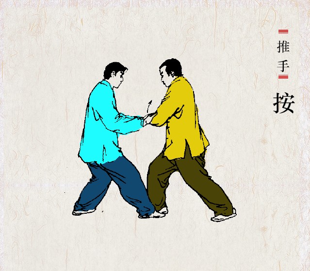 推手时,髓人相互搭手,按照一定的程序,互相推挽,听劲而动,缠绕伸屈,粘走相随,周而复始地作环形运动,俗称“打轮”,在推手过程中,根据“沾、连、粘、随,不丢不损,无过不及,随屈就伸”的原则,双方力争既要化解对方推逼,保持自身稳定,又要顺势,破坏对方身体平衡,进而趁势将对方发放击出。