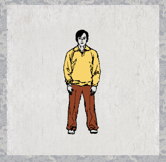 身体自然站立,两脚平行分开,相距约同肩宽,体重平均落于两腿。全身松静端正,精神集中,神态和呼吸保持自然(如下图)。