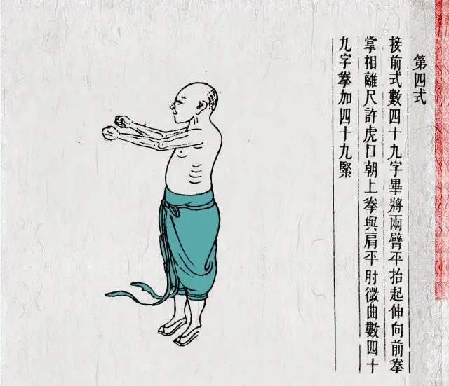 《易筋经》在膜论中提出:“夫一人之身,内而五脏六腑,外而四肢百骸。内而精气与神,外而筋骨与肉,共成一身也。”并把精气神比喻为无形之物。筋骨肉乃有形之身,提出先练有形再练无形,练筋必须练膜,练膜必须练气的练习步骤和方法。