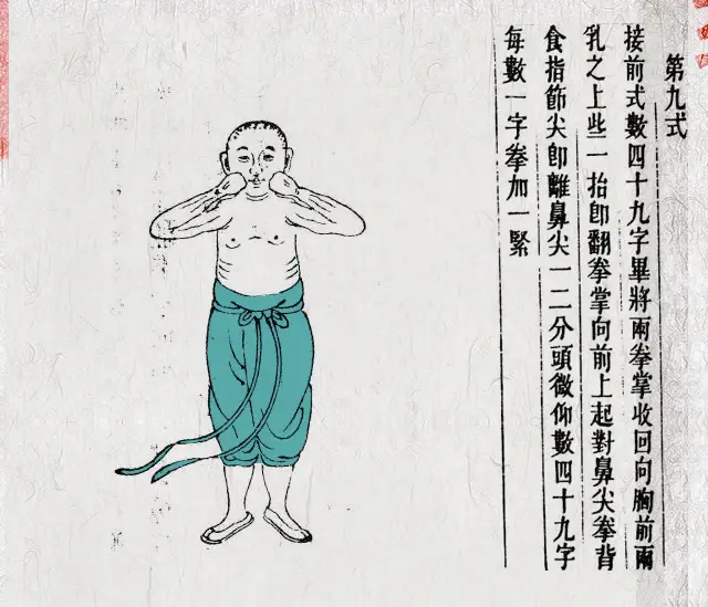 从理论上提出了内、外修练的辩证统一观点,制定了先练有形,然后无形;先内壮,而后外壮的练功步骤。并创编了“外壮神勇八段锦”、“易筋经十二式”、“木杵术槌”、“彀袋功”、“揉腹功”等功法,丰富和发展了传统导引术。《易筋经》在少林寺僧和民间武术传习中流传颇广,被视为武术气功文献的重要著作。