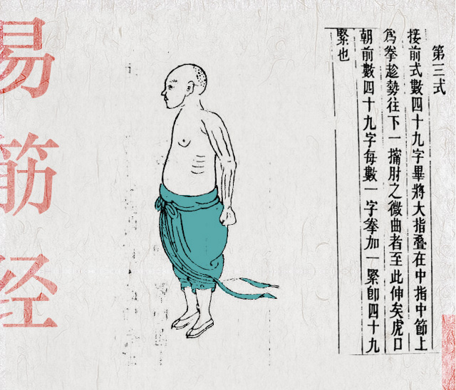 《易筋经》 ,武术内功专著。“易”是变通、改换、脱换之意、“筋”指筋骨、筋膜,“经”则带有指南、法典之意。《易筋经》就是改变筋骨,通过修炼丹田真气打通全身经络的内功方法。