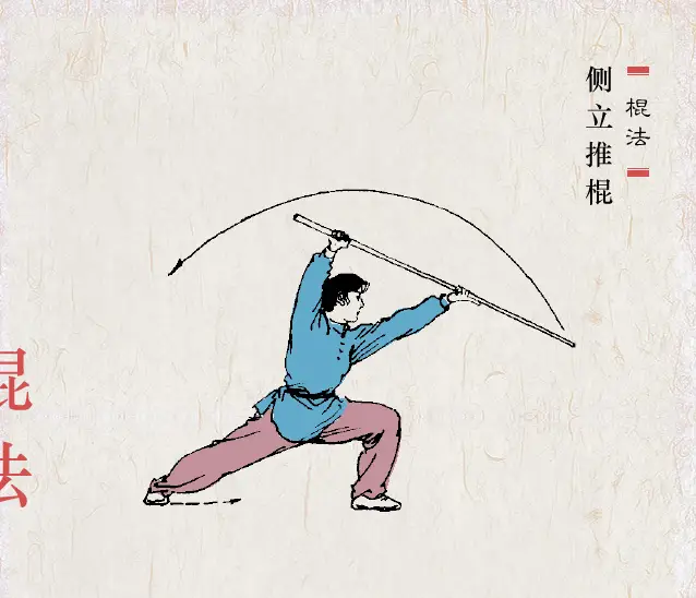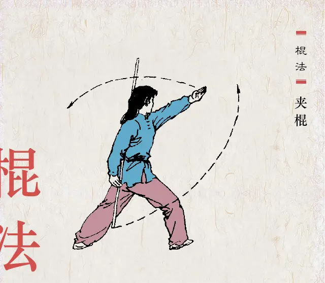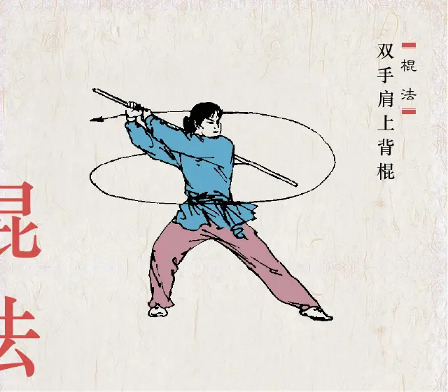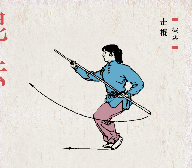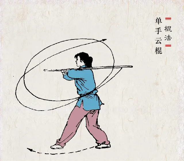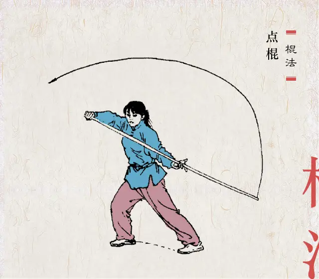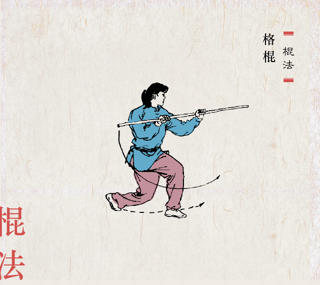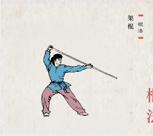 握法灵活 拳语说:“枪似游龙,棍若雨”。棍的特点似疾风暴雨,密而不疏。棍分棍梢、棍身、棍把(即根部)三部。在运动中,一般都是梢、身、把交互使用,变化多端。欲使棍法纵横,抡劈如意,握法灵活是第一要素。
